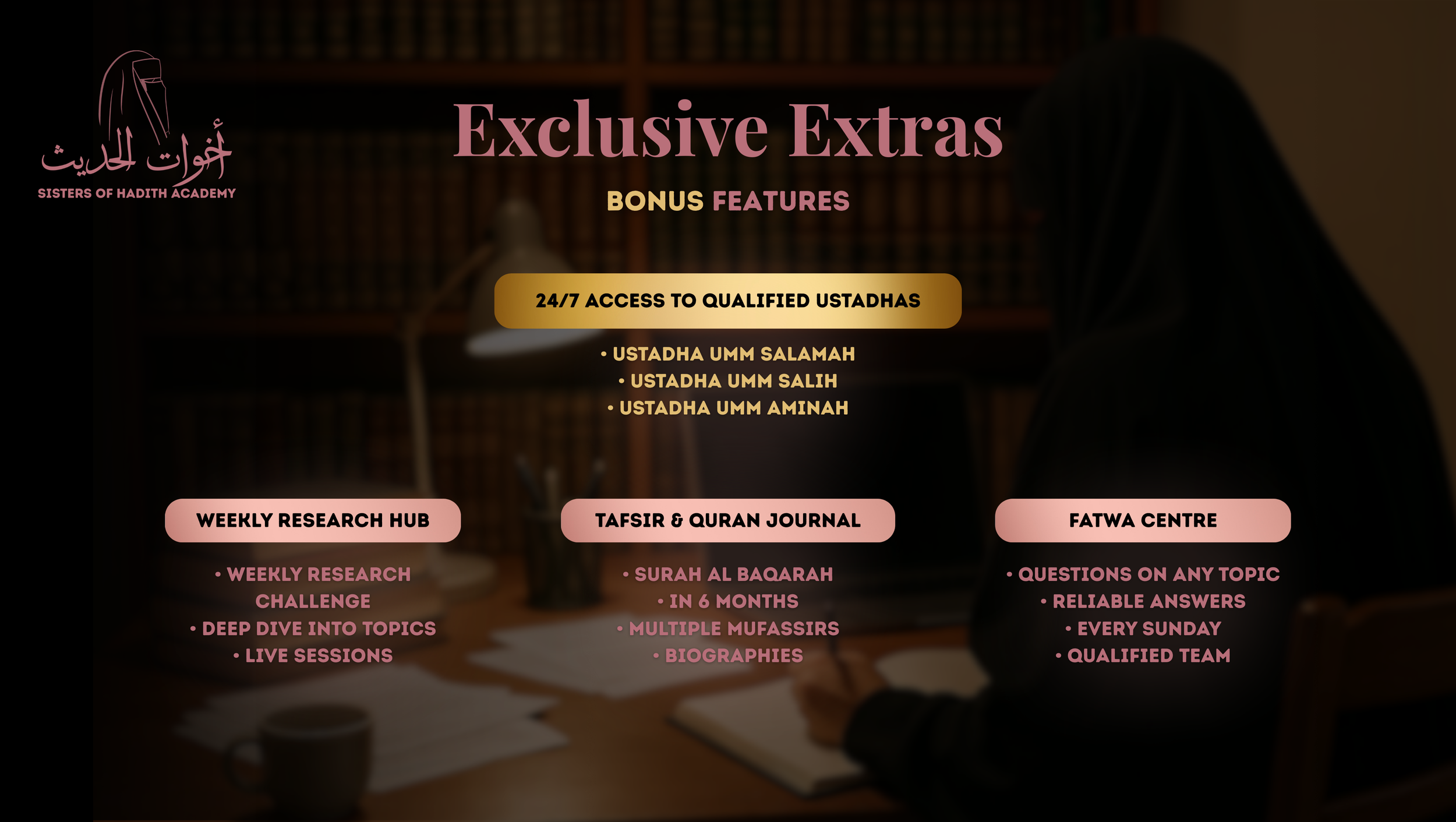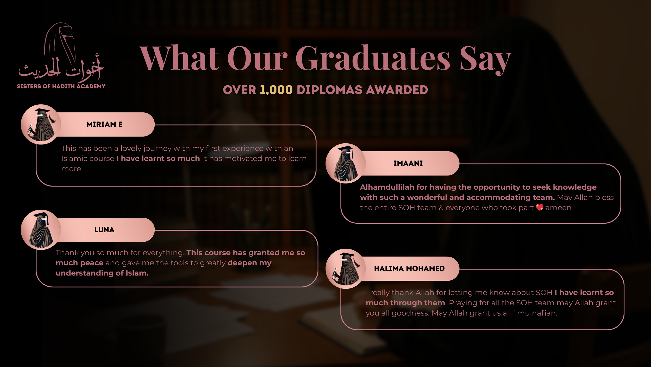 Sisters of Hadith Academy is a female-only Islamic institute, committed to reviving the legacy of female scholarship in Islām.